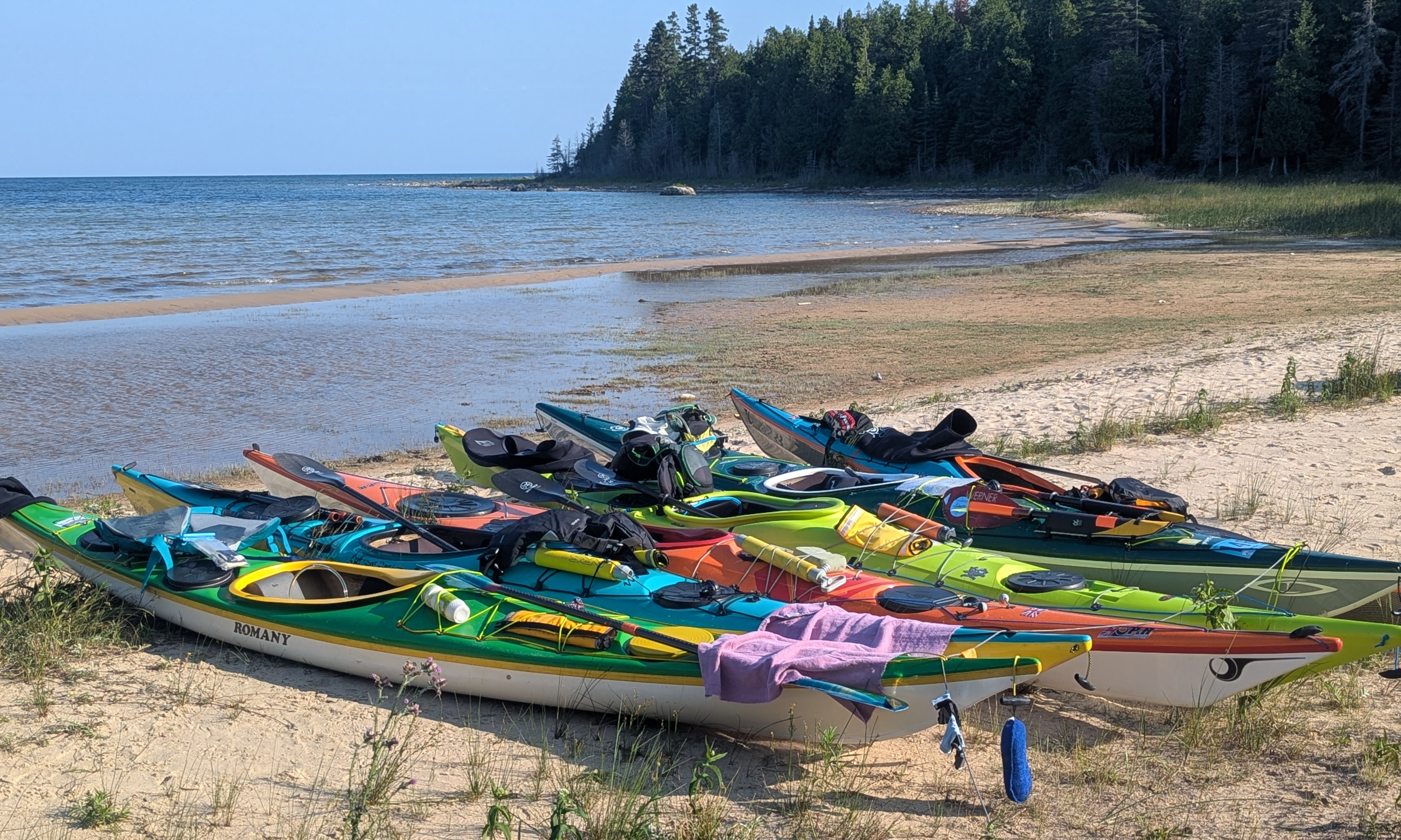 Here are some colourful kayaks on Government Island Beach.