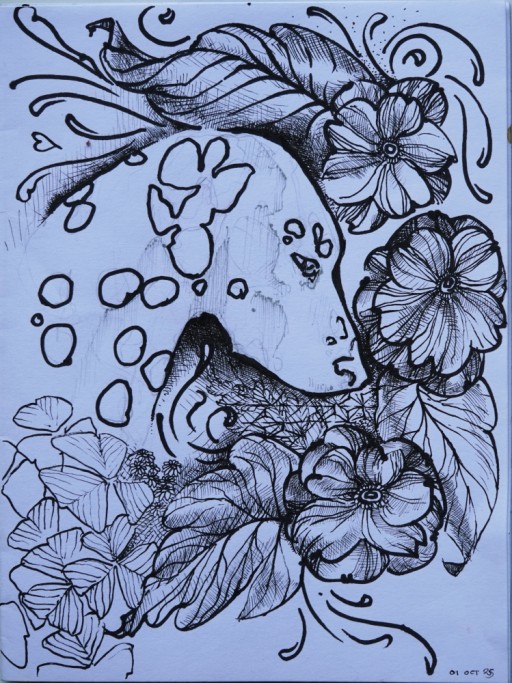 silver grey and black micron drawing on standard 20lb computer paper, 4.5 x 6"; 11.4 x 15.1 cm, 01Oct2025; rotated, cropped, lightened & (badly) colour adjusted in gimp.