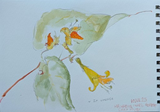 graphite sketch with watercolour; Japanese sketchbook, approx 6x9" 15July2025, PP6; colour adjustment (lightened) & slight cropping gimp