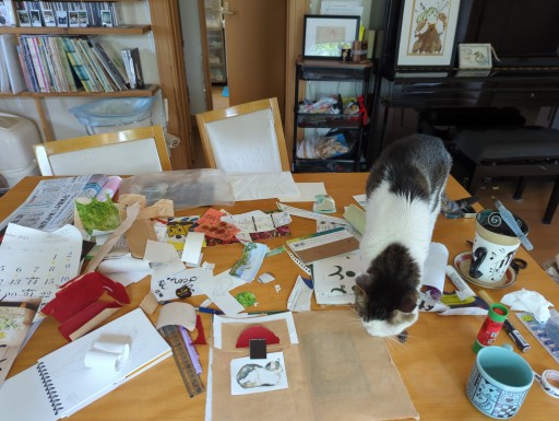 triple portrait of Yuki, can you spot all three versions? That's their dining room table I've covered with chaos, by the way. So kind! PP6, unaltered.