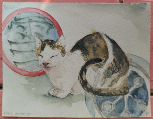 To be frank, while the actual painting of the cat isn't too bad, the kanji and snow crystal are dreadful, but what can you do? As art, it's a failure, but as a little memento, perfectly adequate in conveying how much I appreciated Chiemi-san taking my sister and me in. Even knowing we were sick!