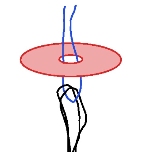 Any kind of stick longer than the hole is wide will do as a stopper, if you don't feel up to making beads or haven't a jar of large garage sale buttons lying about. The instructions tell you to make the hole (roughly) an inch (2.5cm) in diameter, but this isn't necessary. Using a doubled thread as a leader, you can thread the yarn through a hole 1/4 that size. Not only it easier to ‘stop’ a small hole, it is easier to make a small hole: I just punched the cardboard with pointed scissors and rotated. (This step we had to do for the kids, as their scissors are all rounded point.) In fact, if you have scissors and rulers to pass out, you can incorporate measuring (e.g. distance between slots) and geometry (using diagonals to locate the center of your card).