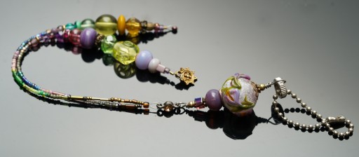 Also, I thought the uranium yellow disk near the bottom of one tail (the one with the faceted green czech next to it) was another pressed bead... which it is, but I made it:) I used a stamp to make the pattern in the center. (It actually has a holepop, which is face up in the first image, but unless you know what you're looking at, it's not at all obvious.)